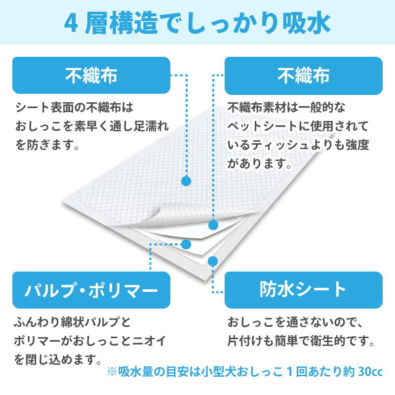 複数回のおしっこを吸収可能なペット用トイレシートです。